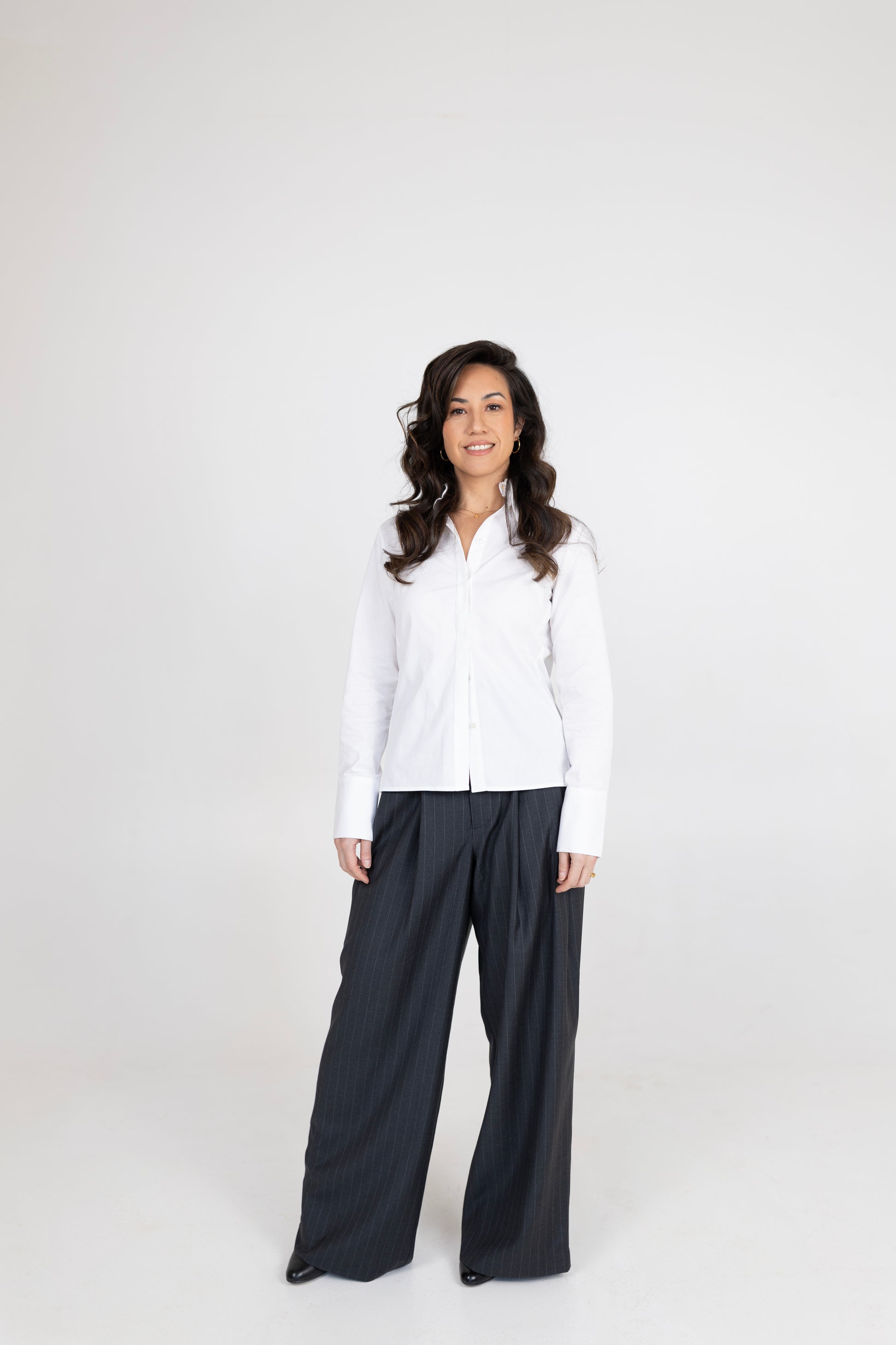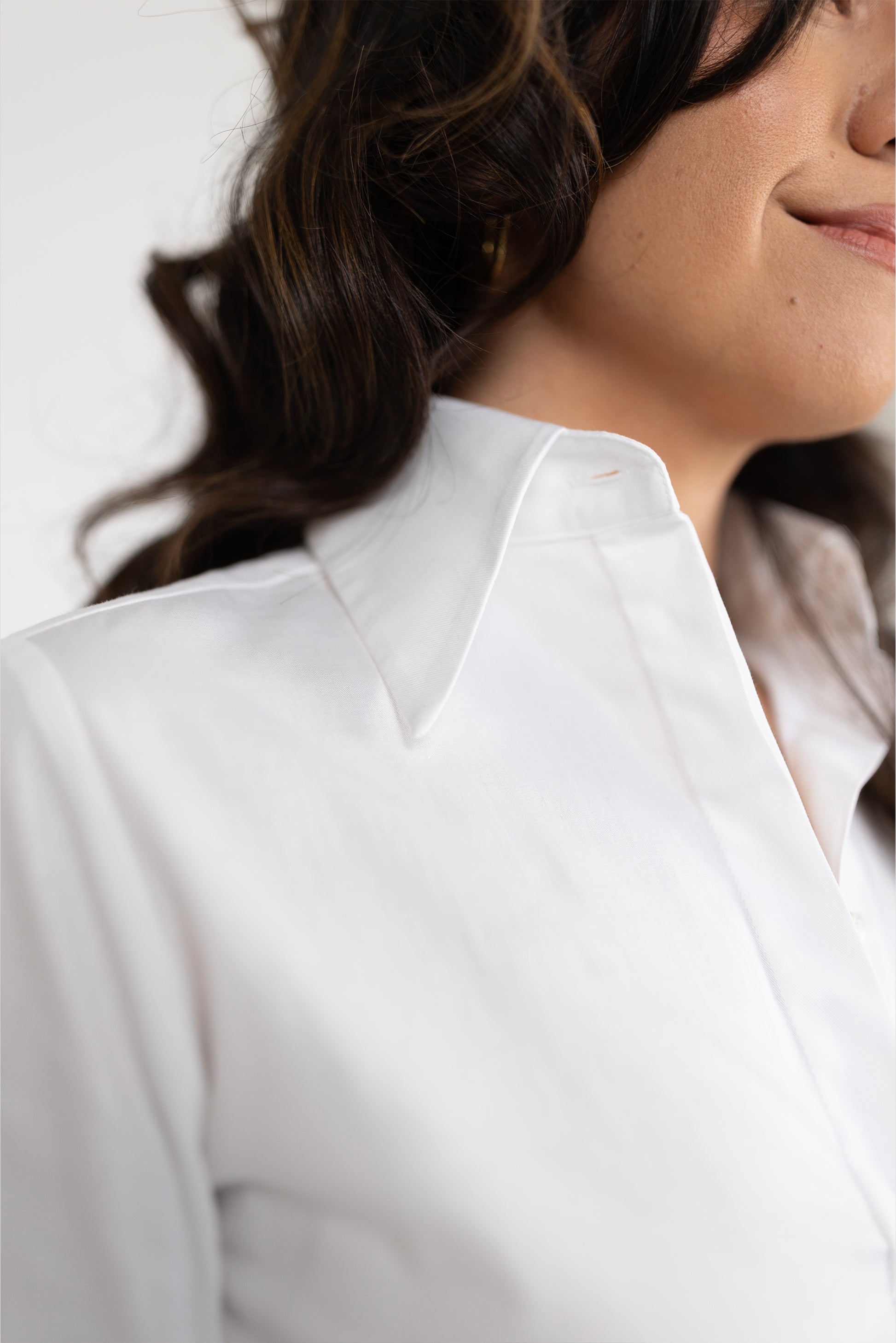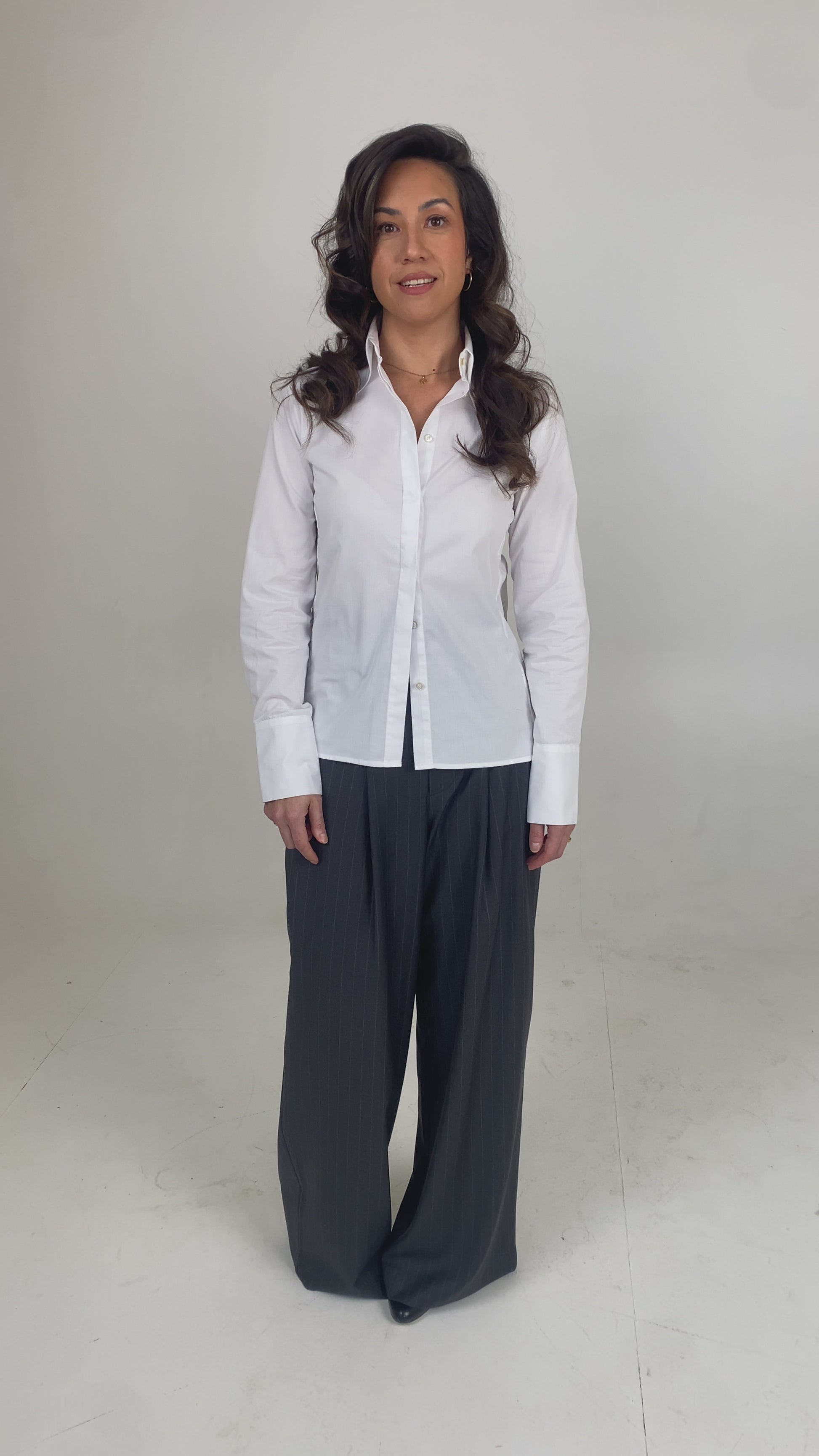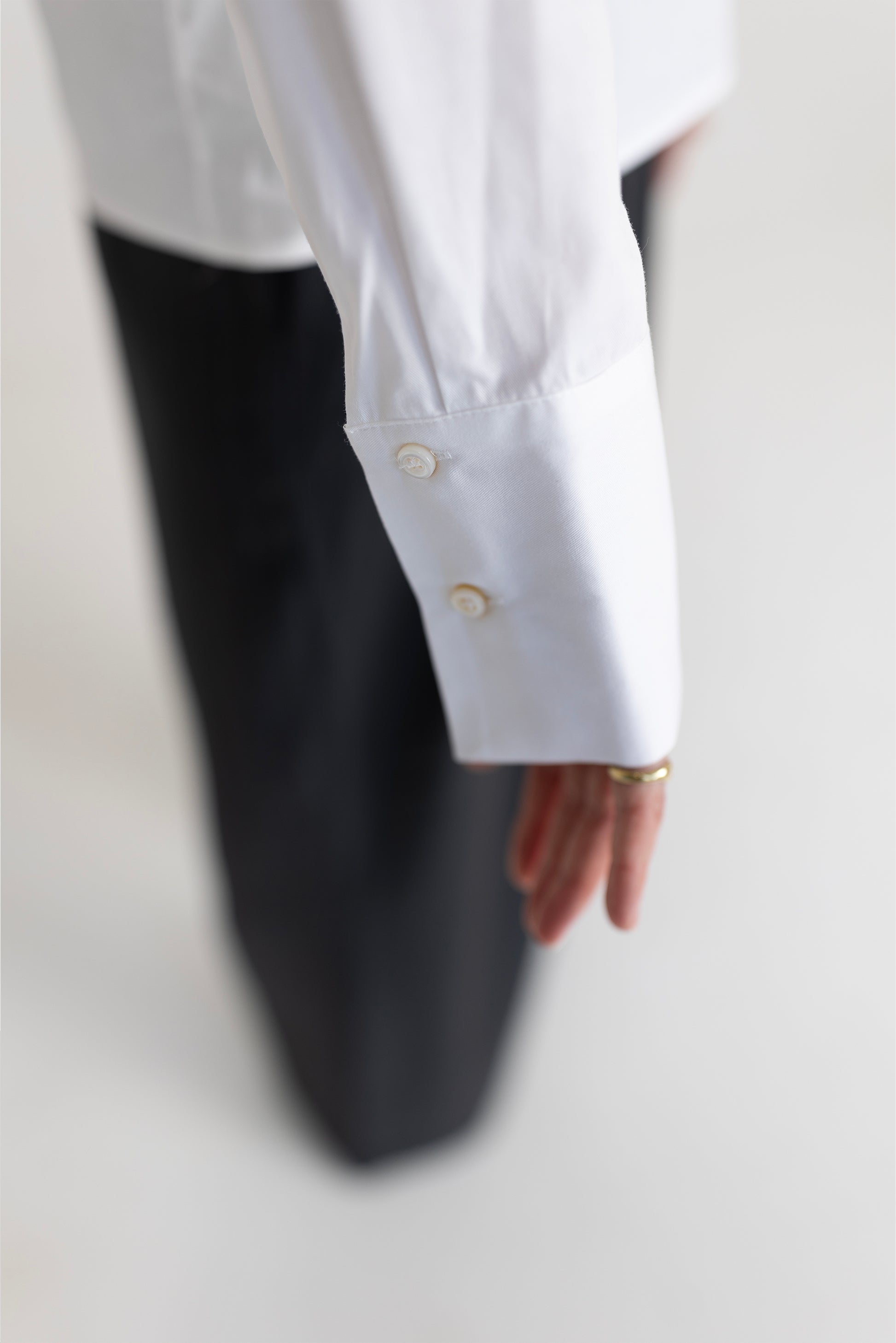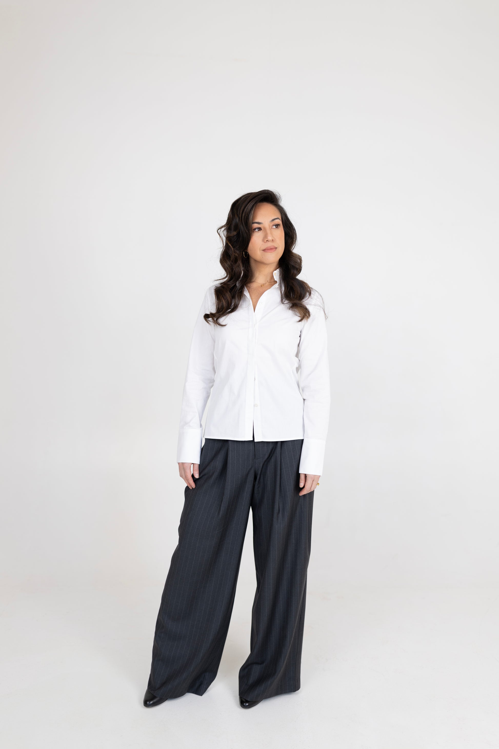 Crafted from premium 100% organic cotton, this blouse combines timeless elegance with sustainable living. Its luxuriously soft fabric ensures all-day comfort, while the fitted design and sleek details, like the invisible button closure and long cuffs, make it a standout piece in your wardrobe. Perfect for those who value both style and sustainability, it’s available in two versatile color options to complement any look.